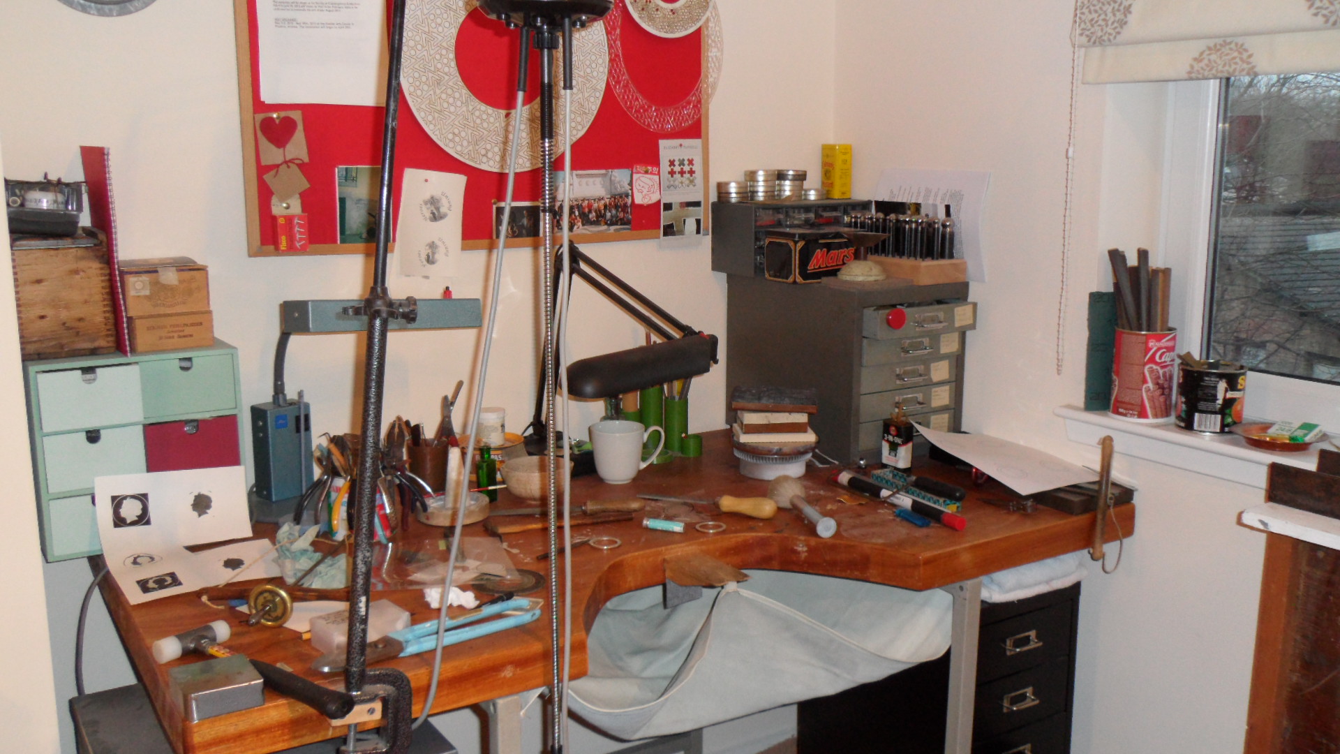 SAM_2615 January 28, 2012 1920 × 1080 SAM_2615 This is my jewellers bench, adjacent to the enamelling area in the studio