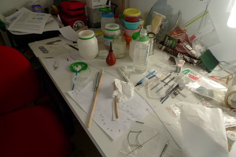 02 Melissa Cameron_Enamel Desk 01_2012 April 22, 2012 800 × 533 Two desk system Productive clutter on the enamelling desk Melissa’s last week of making for the Heat Exchange project