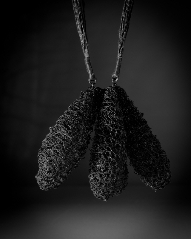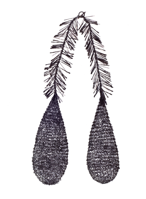 Steel wire, enamel, ground rock, hand-dyed yarn / 2011