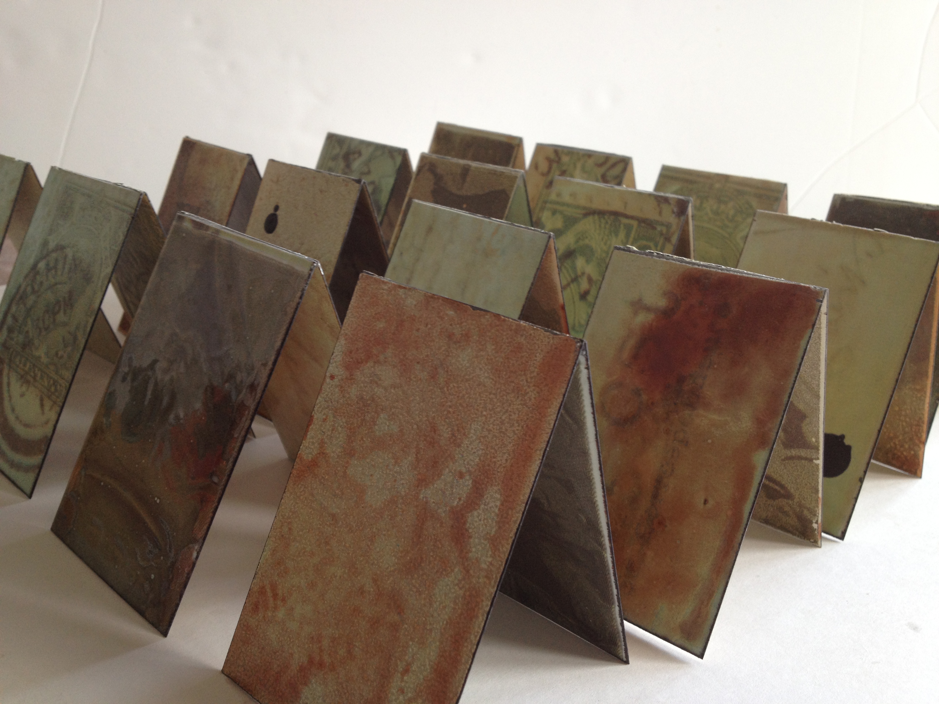 Lindy is also an embroiderer and she was interested in weaving and making stencils to learn to enamel through, I in turn was interested in having bespoke screen created and experimenting with wet enamel to screen print with and to dry sift through.