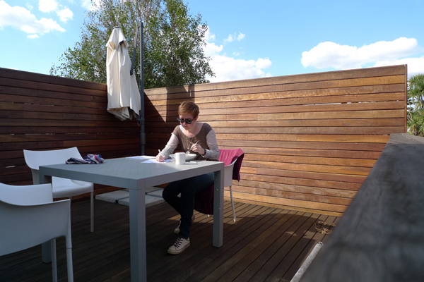 Australia, Heat Exchange 1 artist at work April 9, 2011 Melissa Cameron Melissa takes advantage of some autumn sun, and works over lunch from her home in Melbourne.